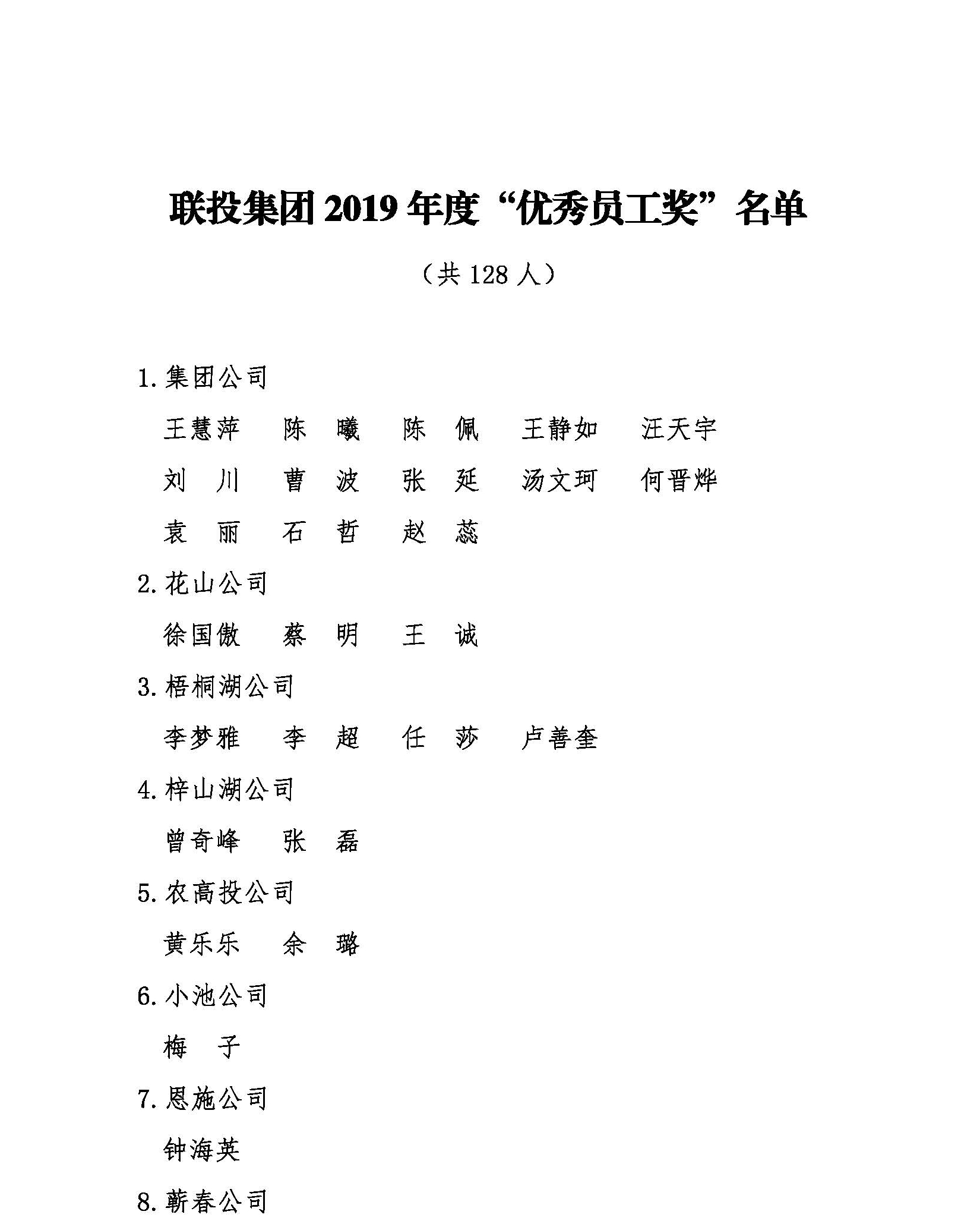 附件:联投集团2019年度评优评先获奖名单